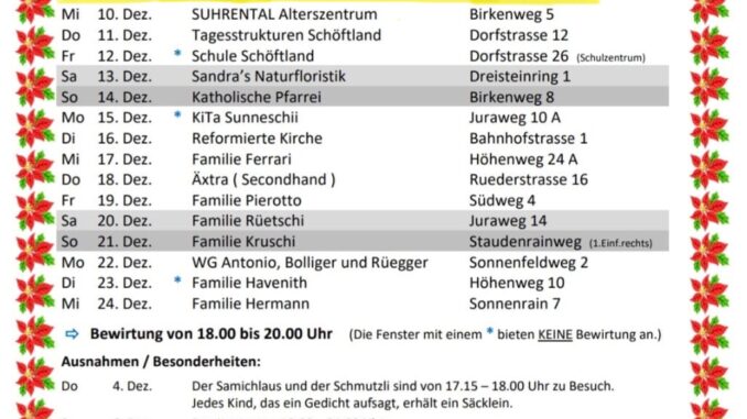 Wir sind beim Adventsfenster in Schöftland dabei!